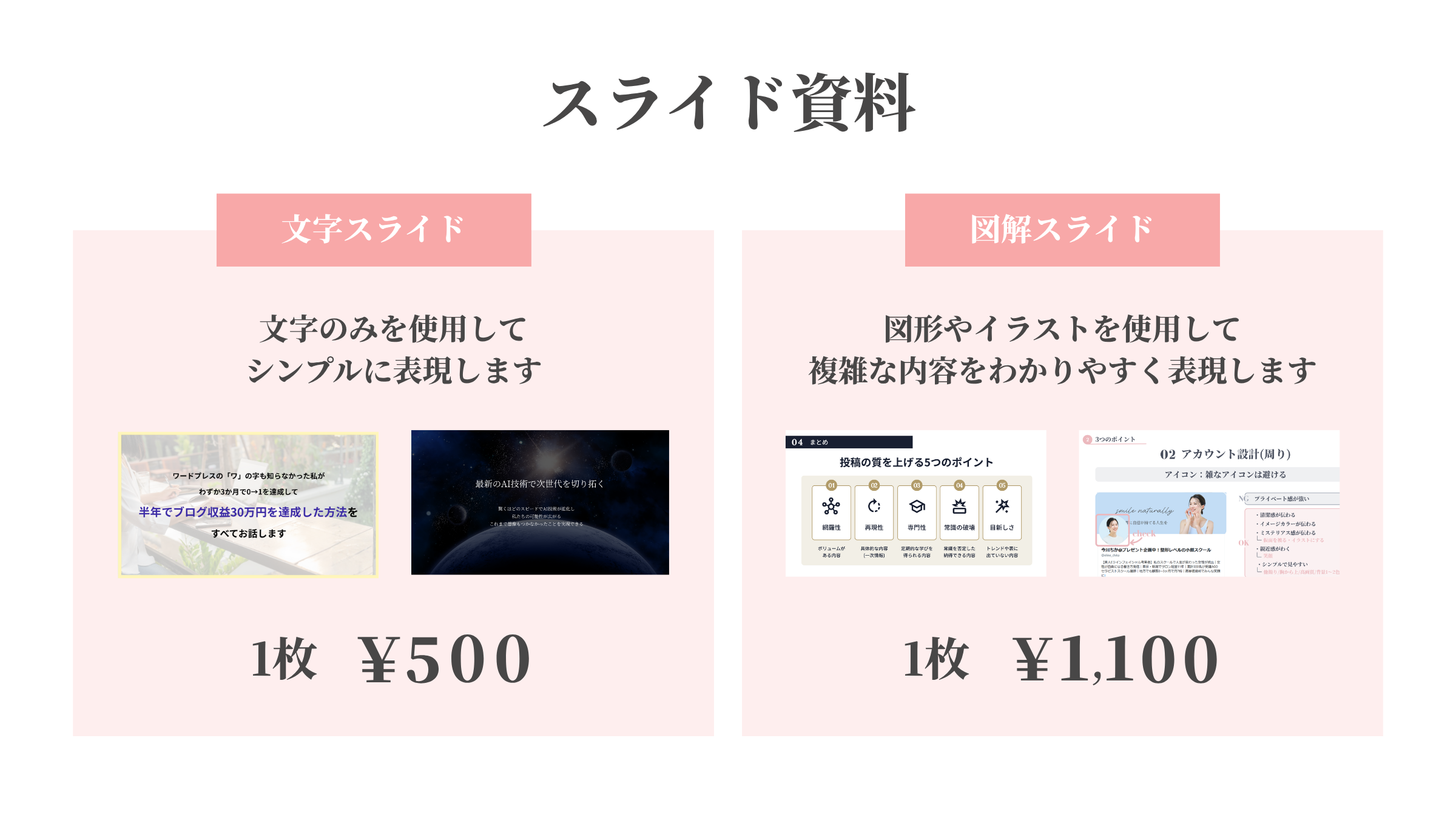 | スライド資料50以上 | 枚数に応じてご相談 |