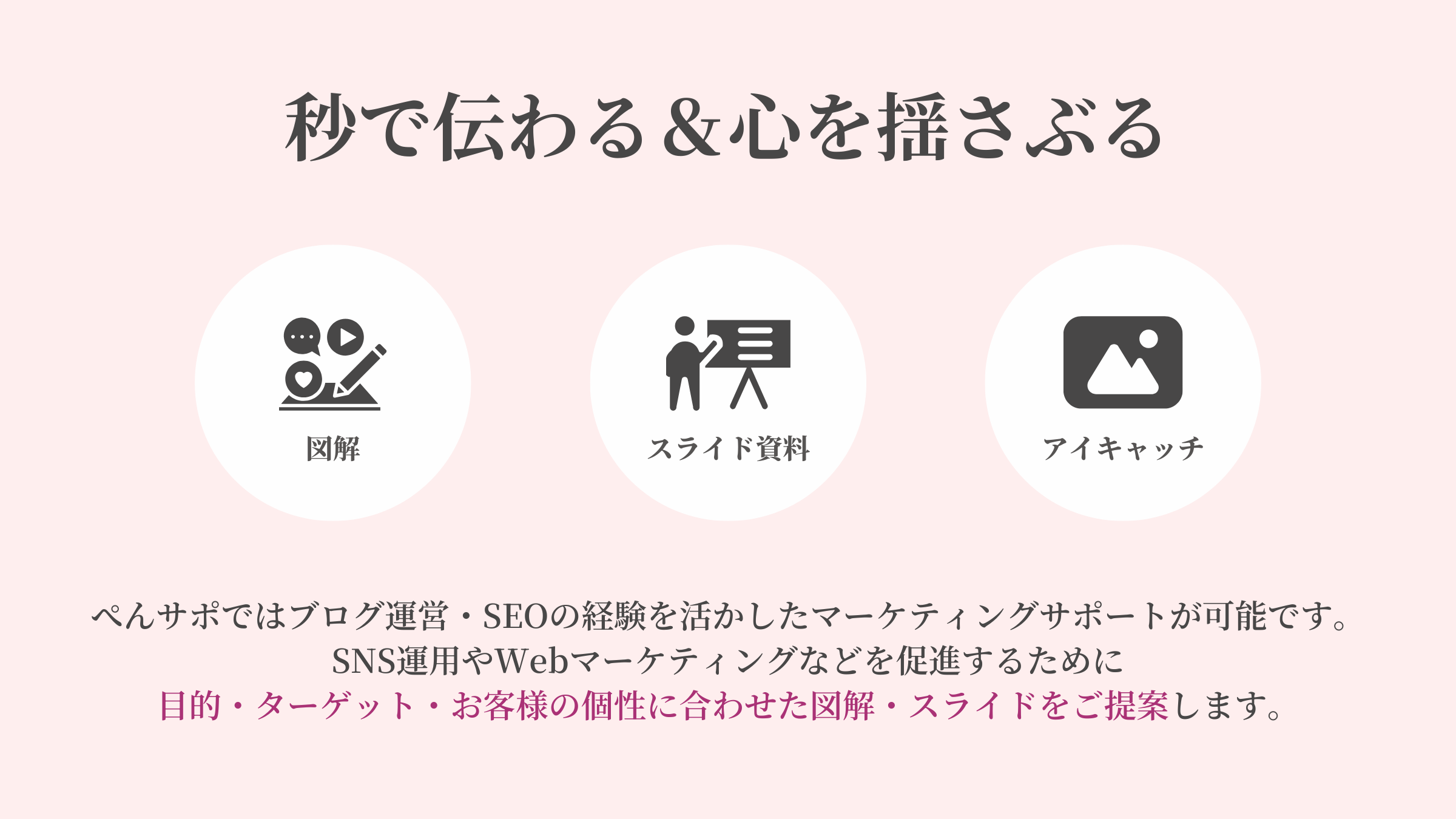 ぺんサポでは、主に個人の事業者様や1人社長様などを対象に図解・スライド資料を制作しております。