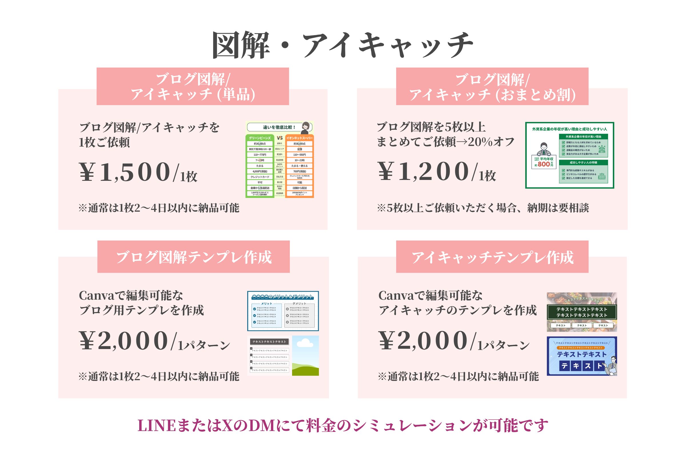 | X投稿用図解:1投稿(3~4枚) | ヒアリング後5~8日程度 |